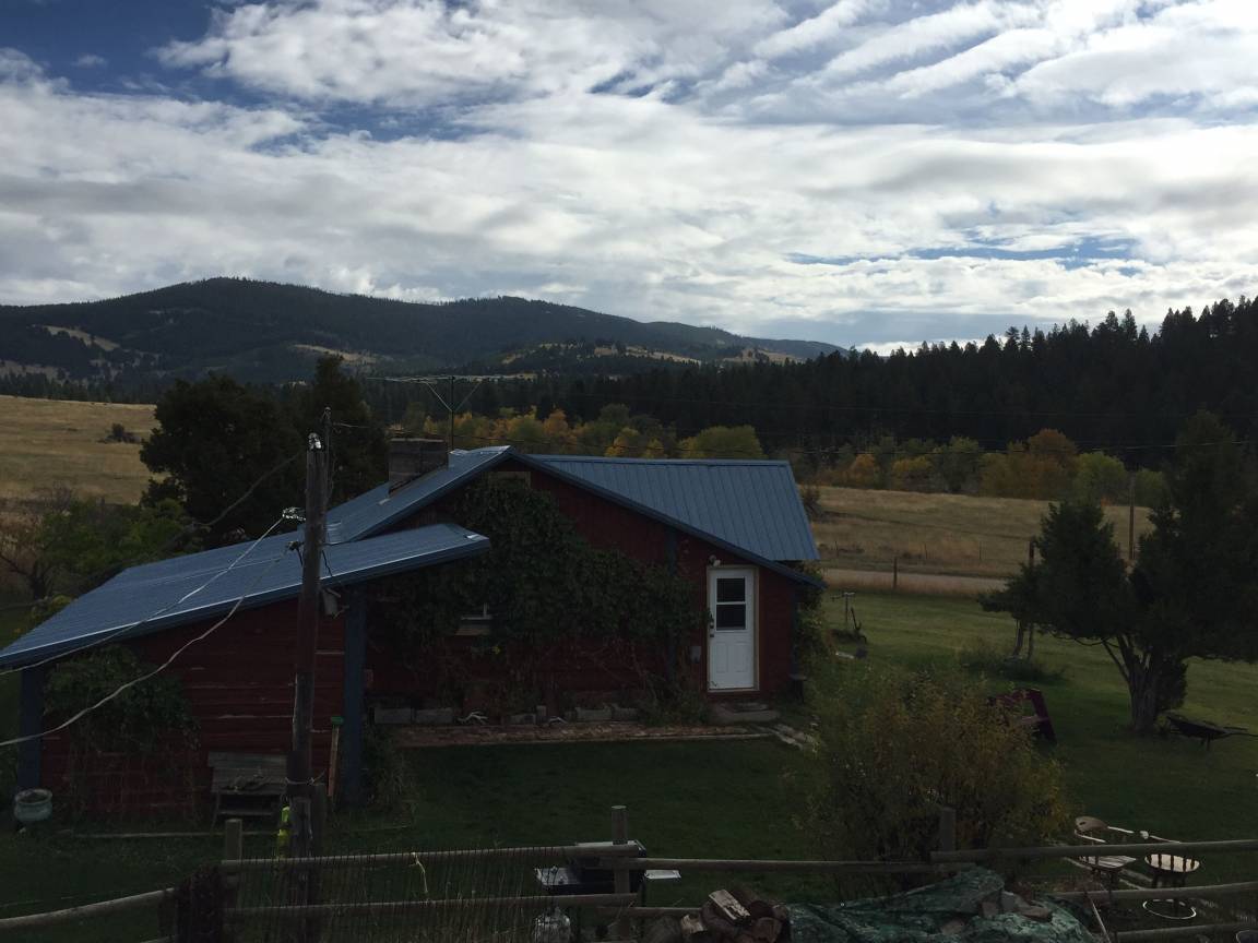 The house has 2 bedrooms with double beds and a fold out sofa bed. It has a fully functioning kitchen and a smaller bathroom. There is also a covered porch to take in the mountain views and a fire pit to enjoy the stars of the Big Sky during the evening. Often during the summer, a herd of elk grazes in the hay field right out the back door.