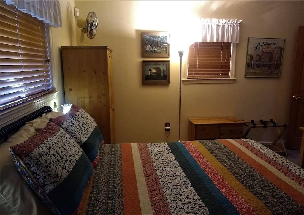Two-room guest suite with private entrance located in picturesque Catonsville, MD on a pre-Colonial road originally used for rolling tobacco to the harbor. Downtown Baltimore is 20 minutes away, BWI airport and Amtrak station 15 minutes, and our street is located on a bus route. Beautiful 3.5 mile walk to historic Ellicott City and an hour from Washington, D.C. Individuals and families welcome!