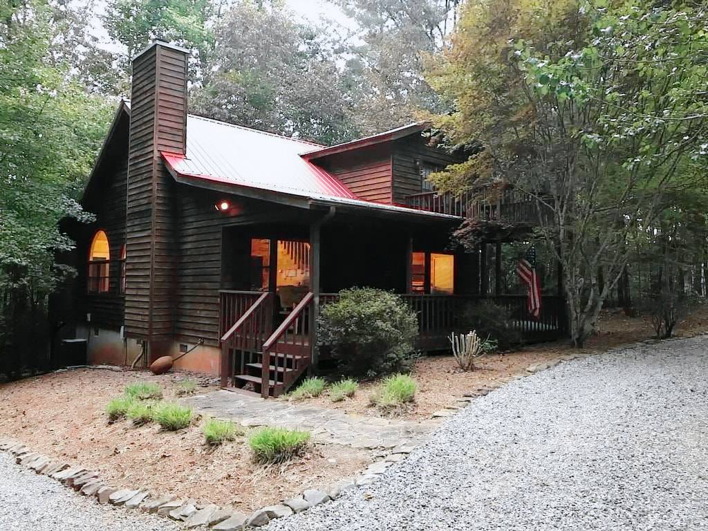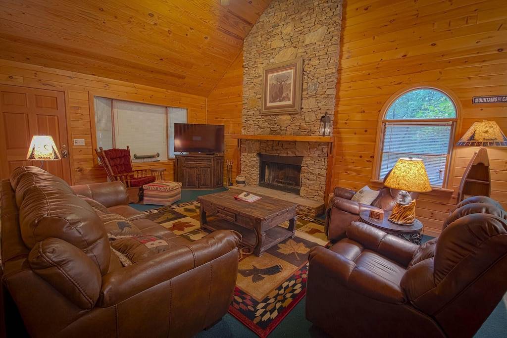 Located about 5 miles from downtown Helen——Tucked away in the North Georgia Mountains, You will find “Sautee Woods” Cabin is all you will need to escape from the hustle and bustle of everyday routine.This luxury cabin has hardwood exterior and tongue and groove pine interior—special windows bring the outside, inside. A massive stacked stone fireplace reaches to the sky! –fully equipped kitchen with electric range, refrigerator with ice and water in the door, microwave, dishwasher, and washer and dryer! Brand new furniture and hot tube added in 2018. Be sure to check out our sister cabin across the street “OAKRIDGE”, VRBO #735289.