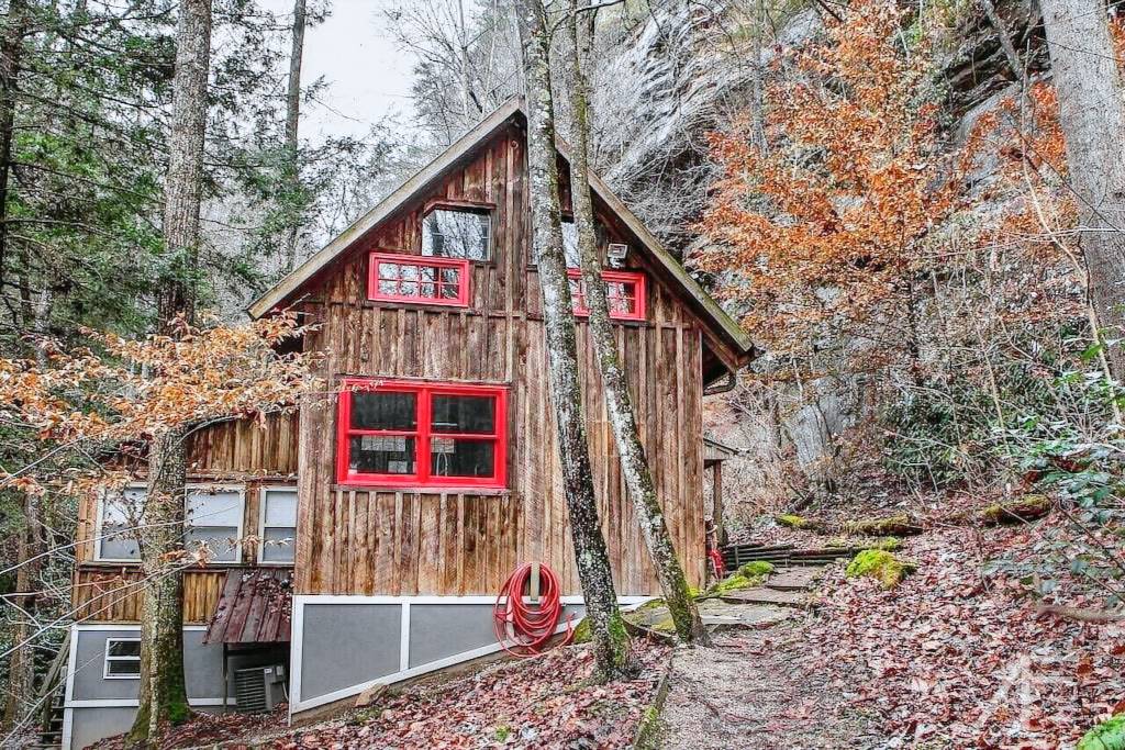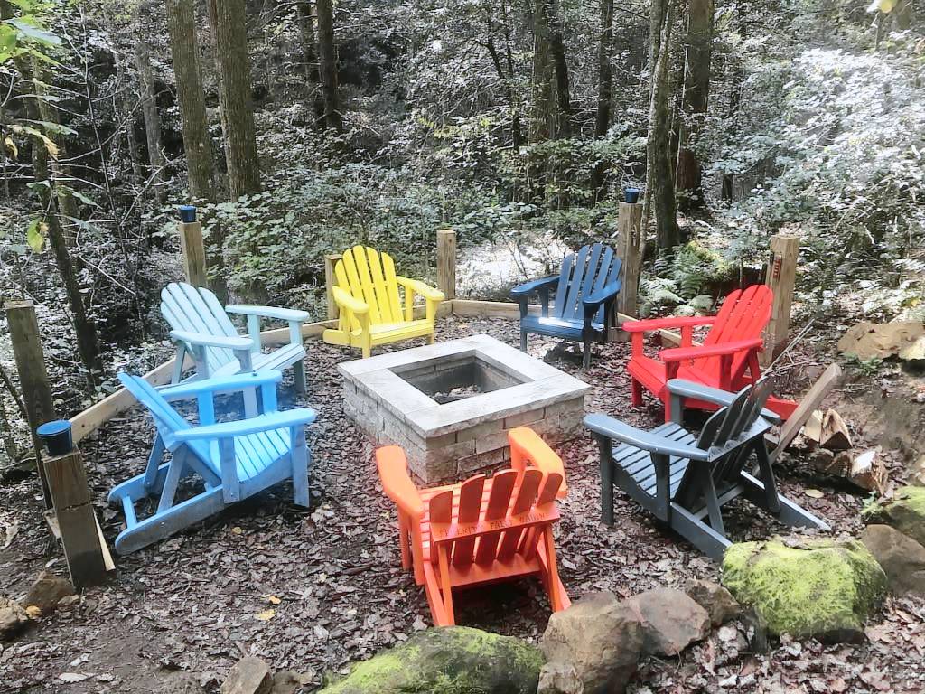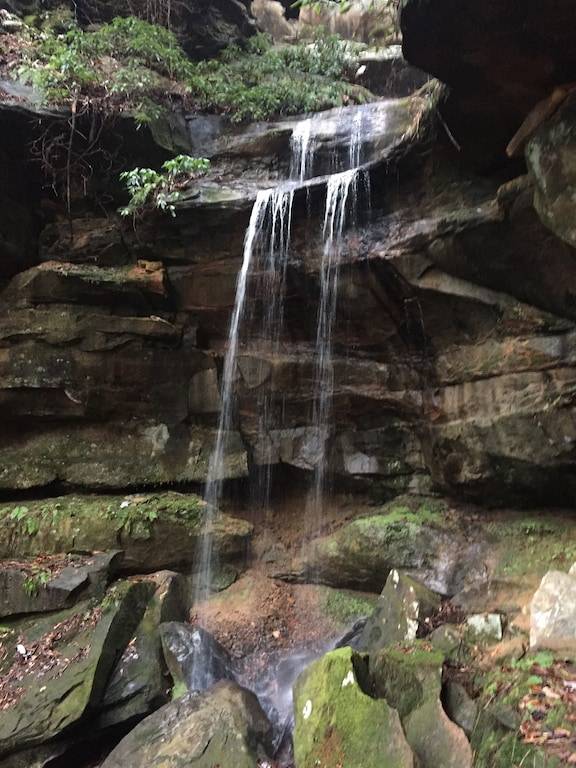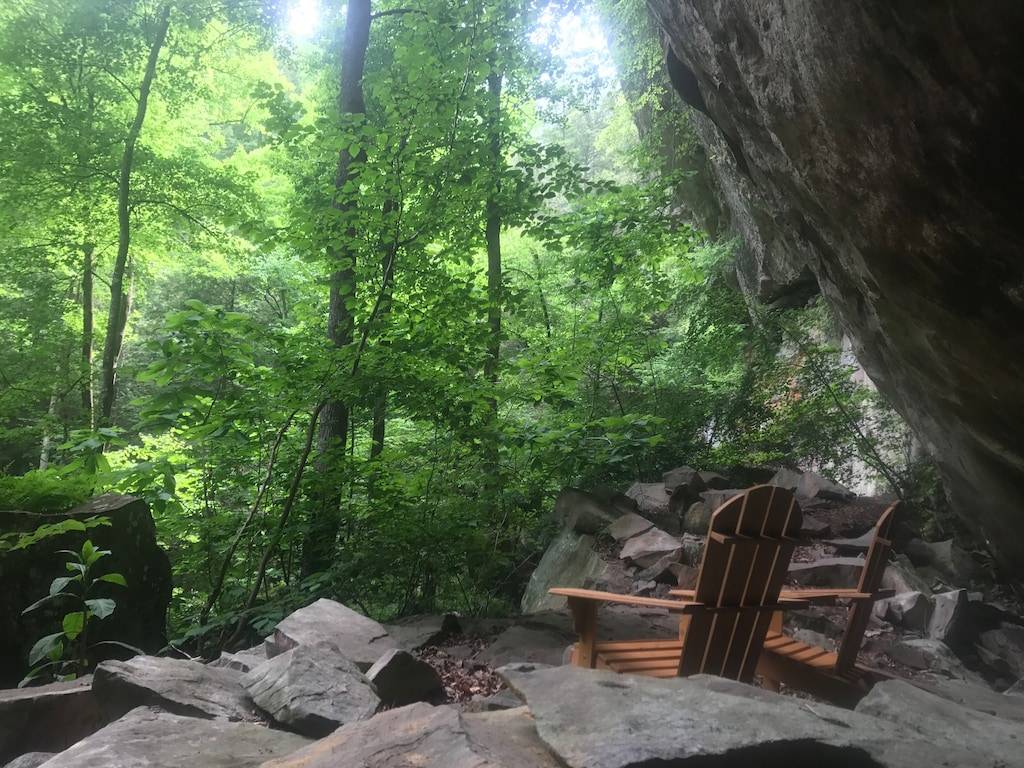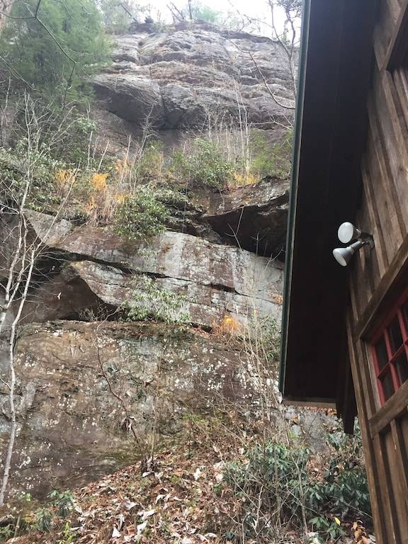 The cabin sits in the middle of a horseshoe shaped canyon. There are unique areas around the property to explore including multiple creeks, beautiful old trees and rock formations that can only be found in the Red River Gorge. There is a seasonal waterfall that you can see from the porch. The waterfall runs in the Winter, Fall and Spring or after several days of hard raining. It is a 3 minute walk up to the cabin from the parking area, but it is well worth the seclusion and beauty of this cabin. There is a fire pit where you can cook over the fire, grill out on the charcoal grill, or cook in the newly remodeled kitchen. The cabin offers indoor or outdoor seating for meals and a large Charcoal grill for cooking. There are two Adirondack chairs situated under the canyon, which makes a relaxing spot for coffee in the morning, especially when it is raining. You can look out to the beautiful horse shoe canyon from the hot tub. This is truly a special, secluded cabin!