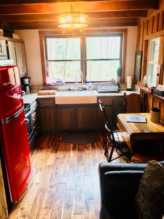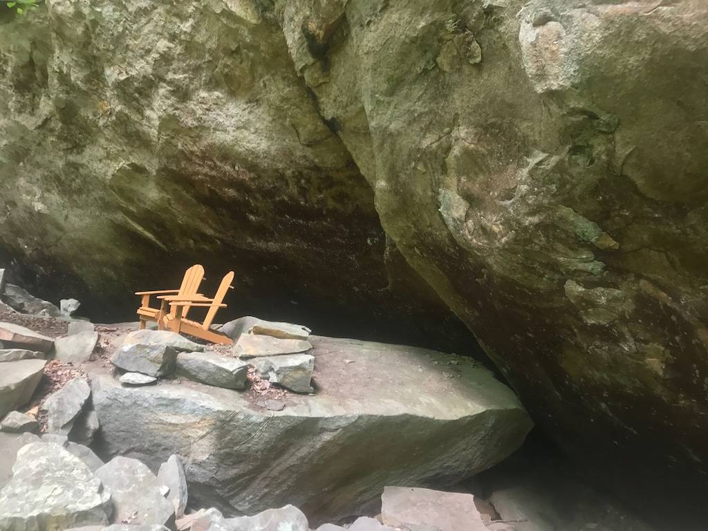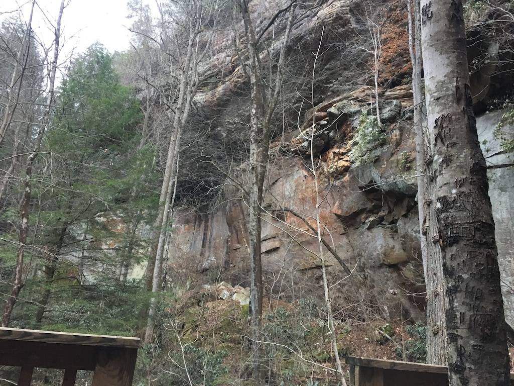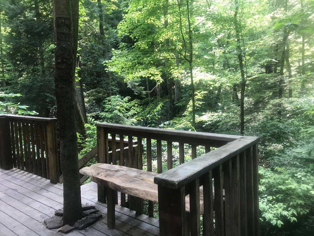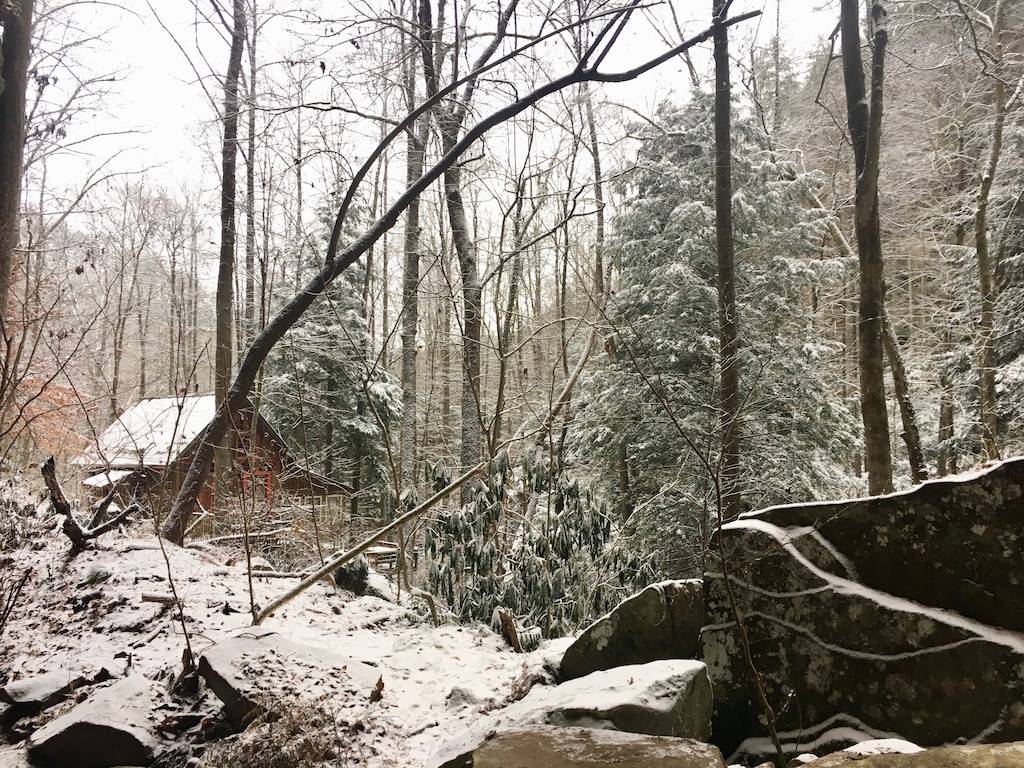 The cabin sits in the middle of a horseshoe shaped canyon. There are unique areas around the property to explore including multiple creeks, beautiful old trees and rock formations that can only be found in the Red River Gorge. There is a seasonal waterfall that you can see from the porch. The waterfall runs in the Winter, Fall and Spring or after several days of hard raining. It is a 3 minute walk up to the cabin from the parking area, but it is well worth the seclusion and beauty of this cabin. There is a fire pit where you can cook over the fire, grill out on the charcoal grill, or cook in the newly remodeled kitchen. The cabin offers indoor or outdoor seating for meals and a large Charcoal grill for cooking. There are two Adirondack chairs situated under the canyon, which makes a relaxing spot for coffee in the morning, especially when it is raining. You can look out to the beautiful horse shoe canyon from the hot tub. This is truly a special, secluded cabin!