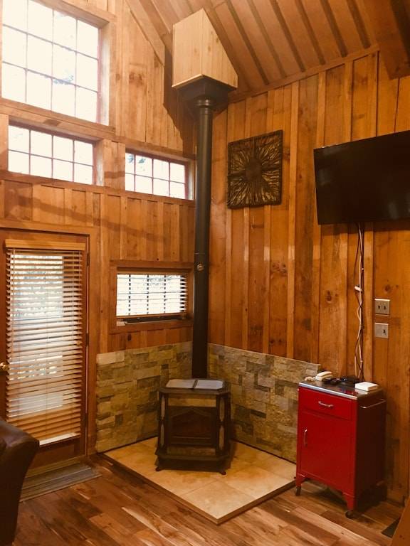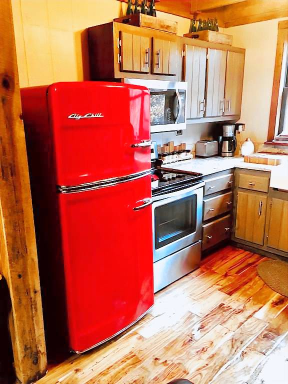 Comfortable beds, hardwood floors throughout the cabin, and a very efficient Woodstock wood stove. Firewood provided. Located in the woodshed in the parking area.