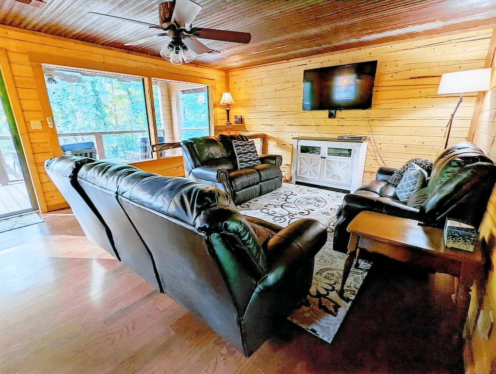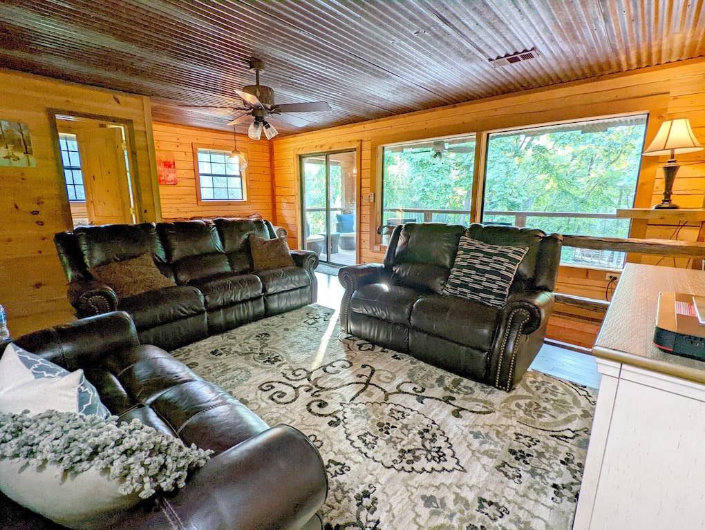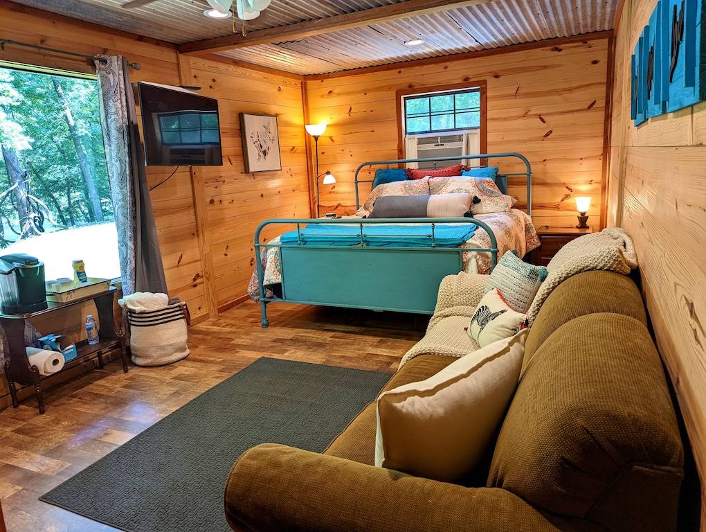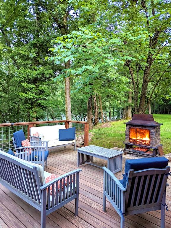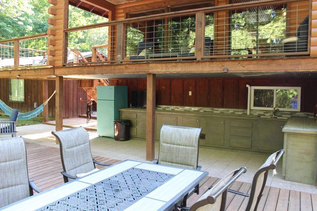 Right on the river! Enjoy our 5 acres of secluded mountain forest perfect for getting out of the city and into nature. Just down the road from us is 37,000 acres of wildlife management area. Fish right from our deck or the riverbank. Deer and turkey abound. We are only 7 miles away from Crater of Diamonds State Park. 18 miles from Glenwood where you can kayak the Caddo River. 35 miles from Caddo Gap hiking trails and our favorite, Winding Stair hike. Bring your ATVs for nearby trails. Lake Greeson is 6 miles away and offers pontoon rentals, and boating activities. King bedroom that has the queen sleeper sofa is a DETATCHED grandmothers suite and the bunkroom is only accessible from an outside door. The property is remote and it would be difficult for a Porshe to manage the road, our neighbors Prius made the trip…. any SUV is fine.