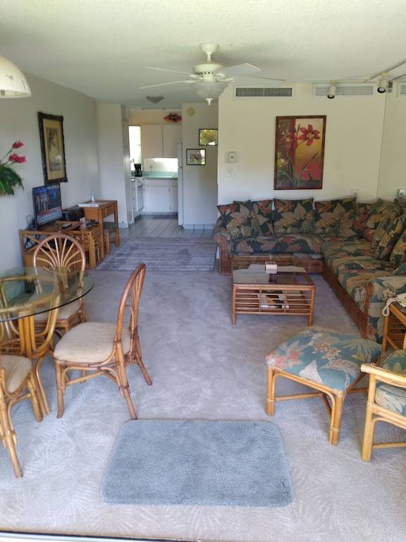Decorated in traditional Hawaiian style, our ground floor condominium provides the comforts of a home away from home for any couple or family interested in a Ka’anapali Beach vacation. At our condo you are close to all the fun and shopping of the mega-resorts at Ka’anapali without having to deal with the crowds and noise. Your vacation sleep will never be disturbed by late night party types or unsupervised teenagers. You will have easy access to what many people agree is a truly serene section of Ka’anapali Beach with the only full-service beach-side Cabana in the area – and that includes the Westin, the Marriott, and the Sheraton. There is a complimentary six-passenger electric shuttle service to the Cabana from your room, or you can make the five-minute walk to the beach through the beautiful garden and pool areas of the resort and golf course.