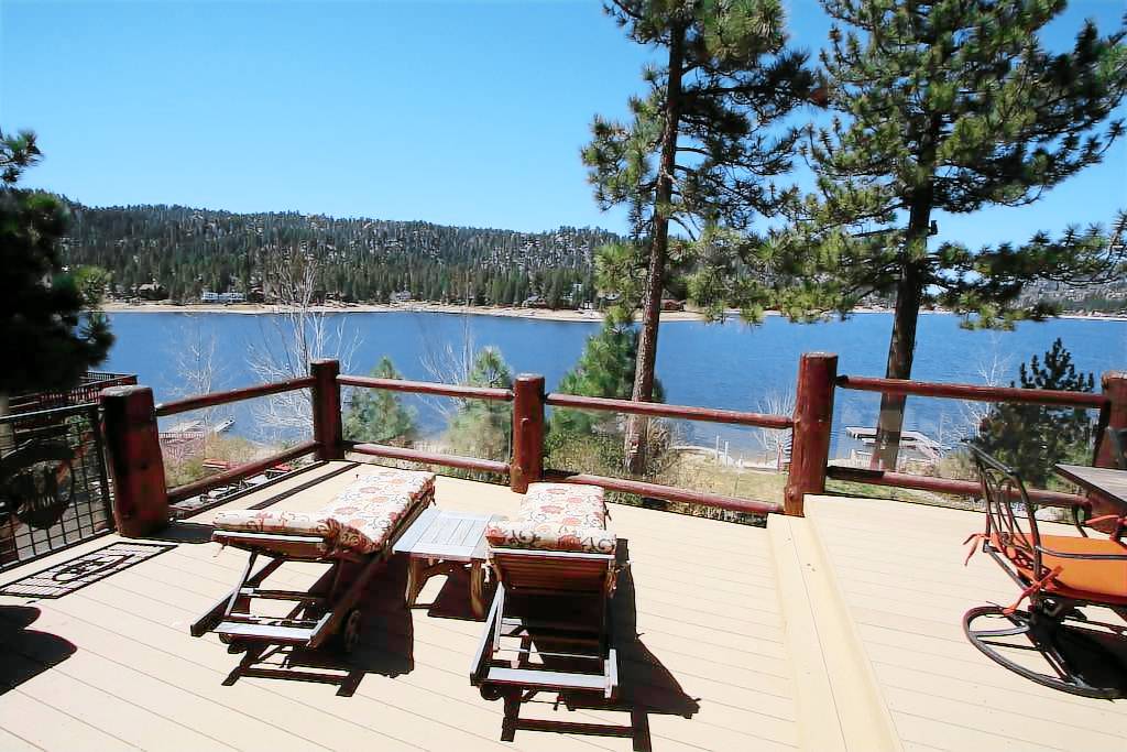 There is a reason they call this Inspiration Point, it truly is the most breathtaking views of Big Bear Lake. This 5 star quality home boasts gorgeous use of hardwood floors, slate, granite and glass. This 4 bedroom, 4 bath, home features: a large game room w/ pool table, plasma TV s in each bedroom, radiant heating, an oversize deck w/ hot tub, BBQ, and chaise lounges perfect for sunbathing and enjoying the spectacular views. Below the deck is just under 100’ of private beach and a gas fire pit.