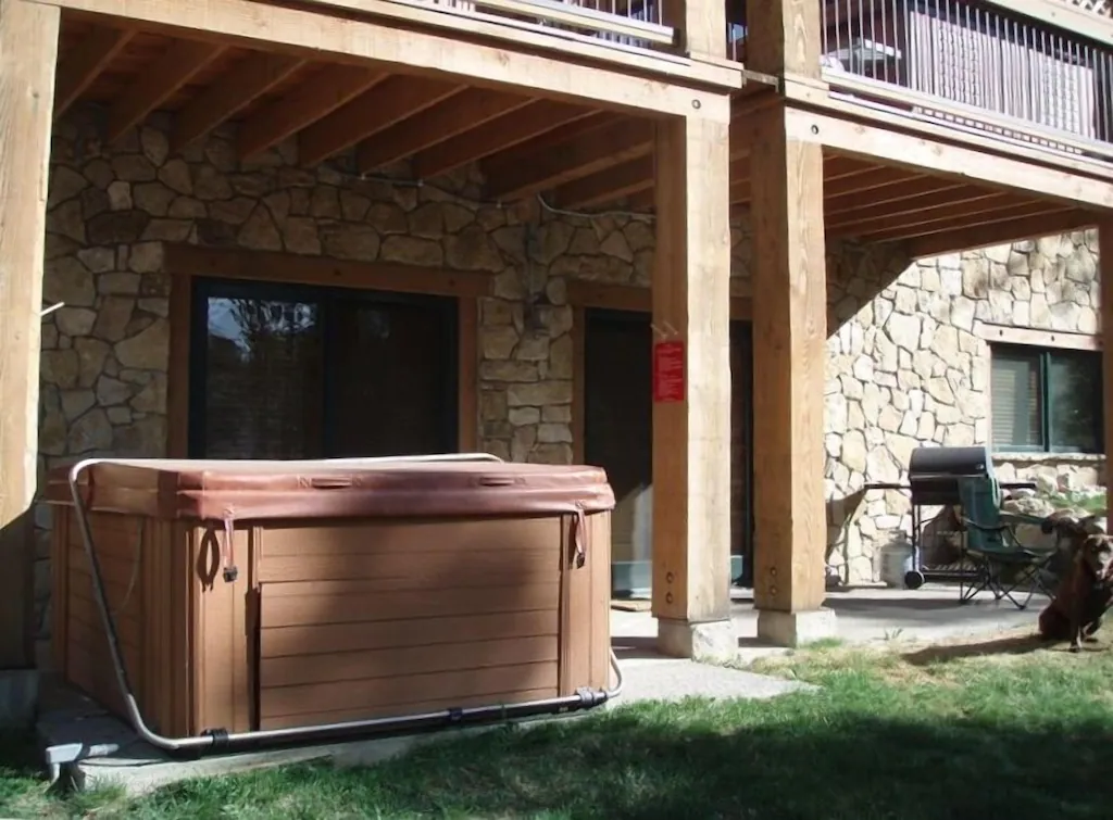 This unit has an upscale rustic finish with alder cabinets and doors, granite tile countertops, and private entrance facing the ski slope. The furniture is rustic as well with a comfy couch (folds into a bed) and overstuffed chair to chill out in. In the bedroom, there is a king-sized bed and full bath. Get cooking in the kitchen or use the grill out by the hot tub as you recover from a day on the mountain