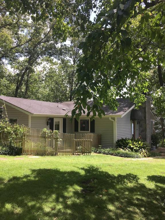 Our dock accommodates a 20ft. pontoon boat. The public launch is very close to the lake and Slab Out is right across the lake from us, right next to the YMCA.