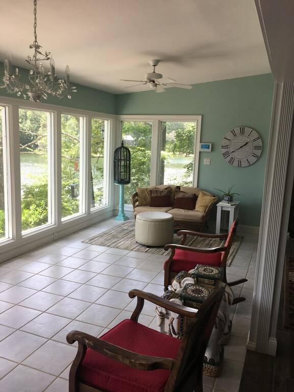 Our house is a very comfortable 3 bedroom 2 bath home on Lake Jordan! This home has an open design with windows galore to maximize your view! Great expansive deck overlooking the lake, large enough for the whole family to enjoy meals outdoors. New updated master bathroom.