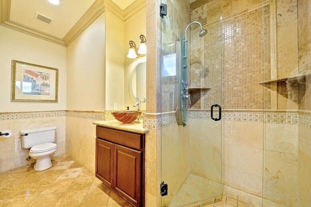 All the bathrooms are tastefully decorated with stone showers and tub. Generous linens, pool towel, extra blankets and pillows are also provided.