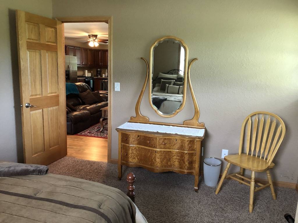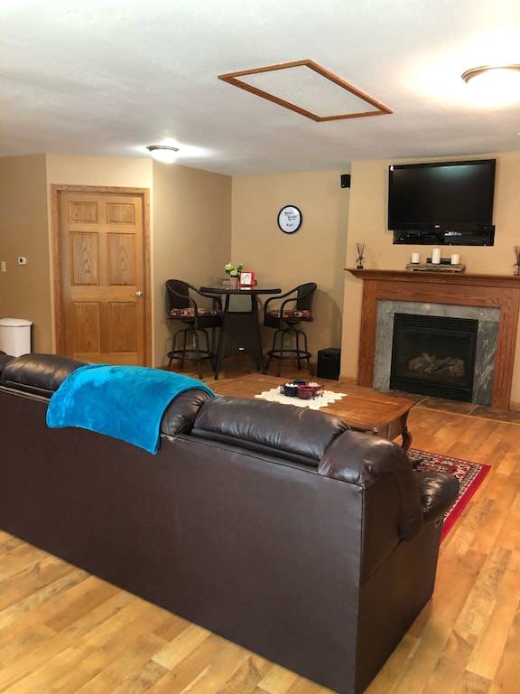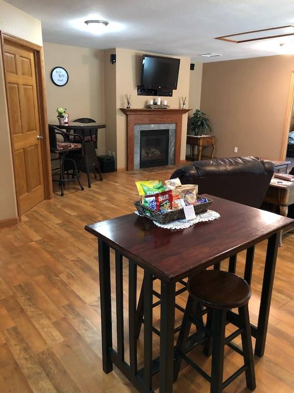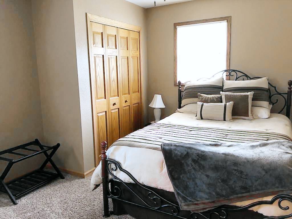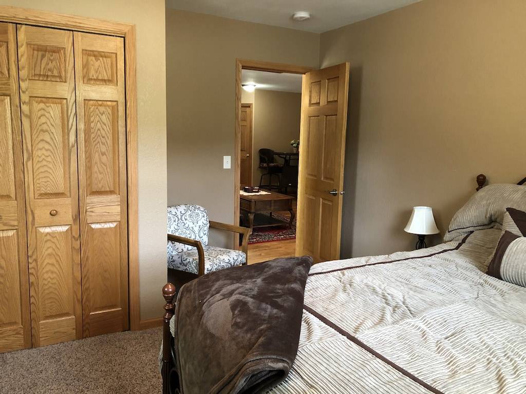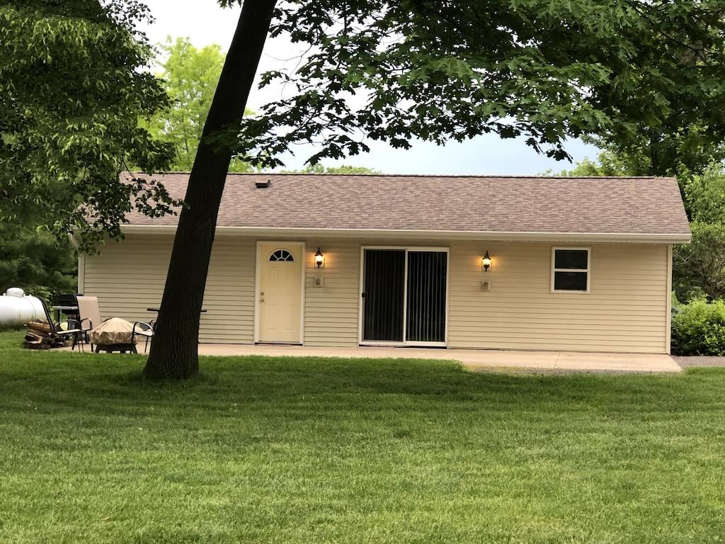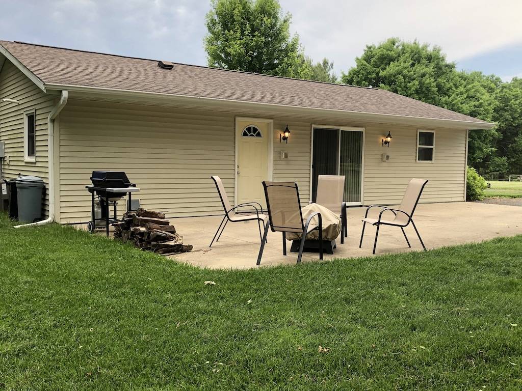 Two bedroom open concept guest house. Approximately 950 square feet. Located between Iowa City and Cedar Rapids, 5 minutes from Sandy Beach Campground and 20 minutes from Cedar Rapids Airport. Amenities include; full kitchen including dishwasher, washer and dryer, fireplace, surround sound theater setup, wireless internet, HD TV with all movie channels, gas grill and patio furniture. Fire pit available upon request. Plenty of wildlife to be seen, to include deer, wild turkeys and many birds. Foot path (-50 yards) down to Coralville Reservoir. Feel free to bring fishing poles!! We do clean thoroughly and we don’t charge any cleaning fees.