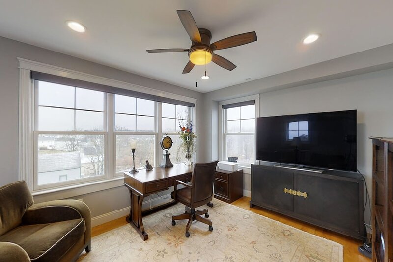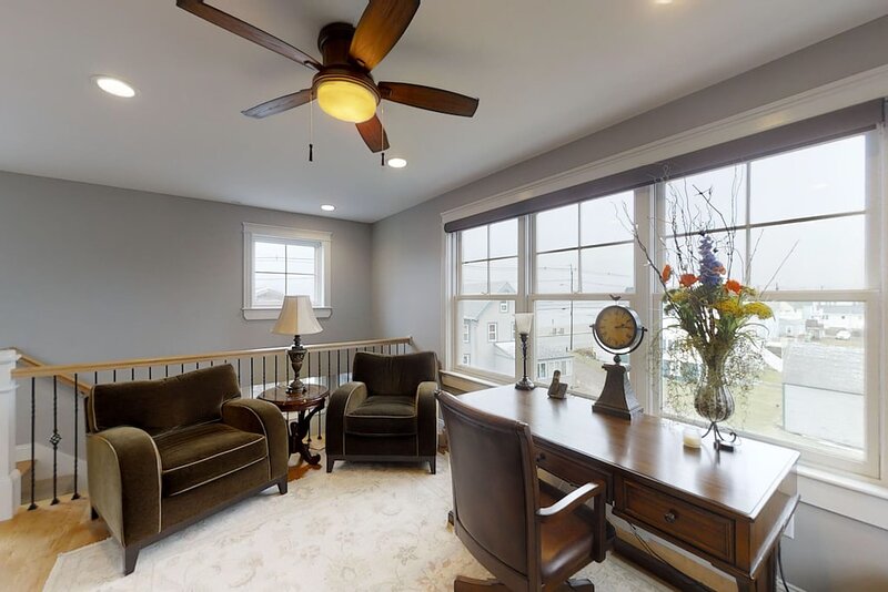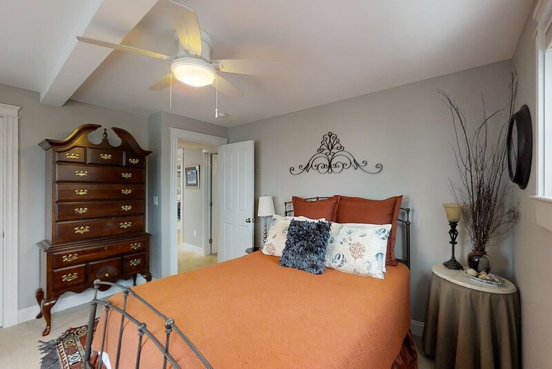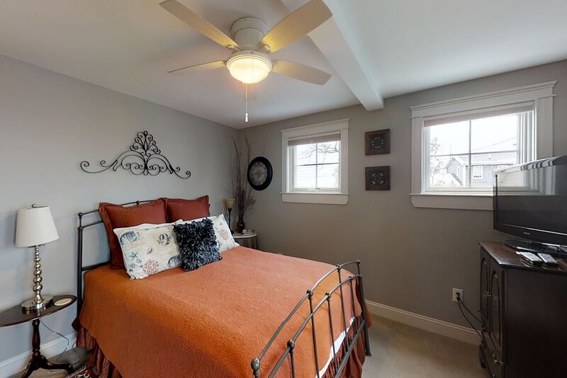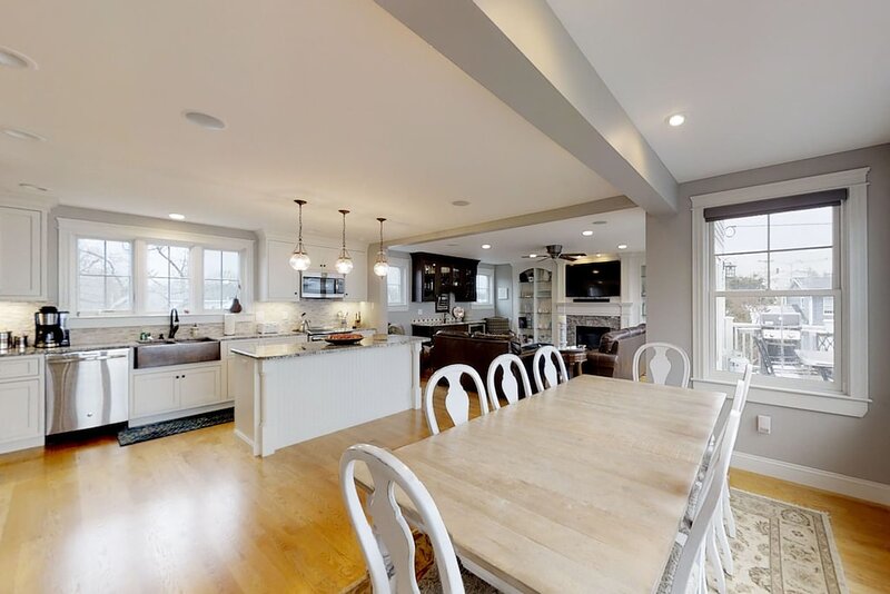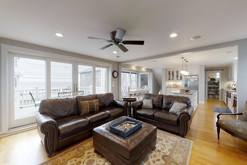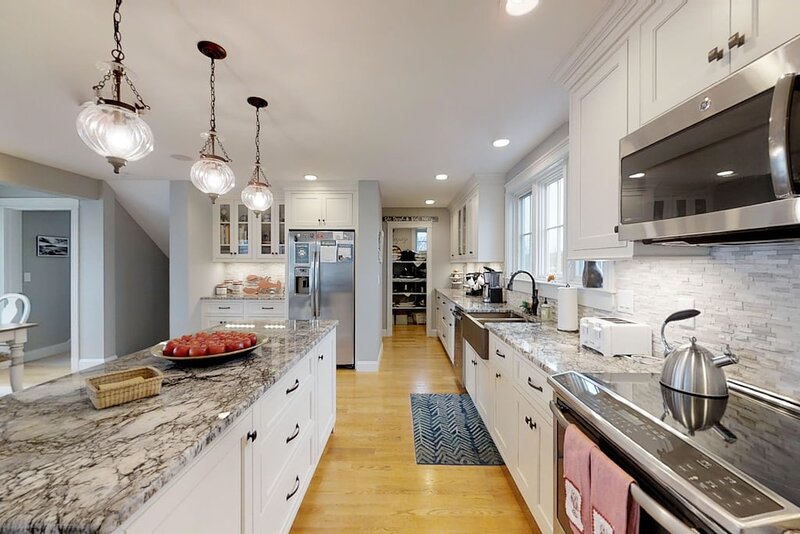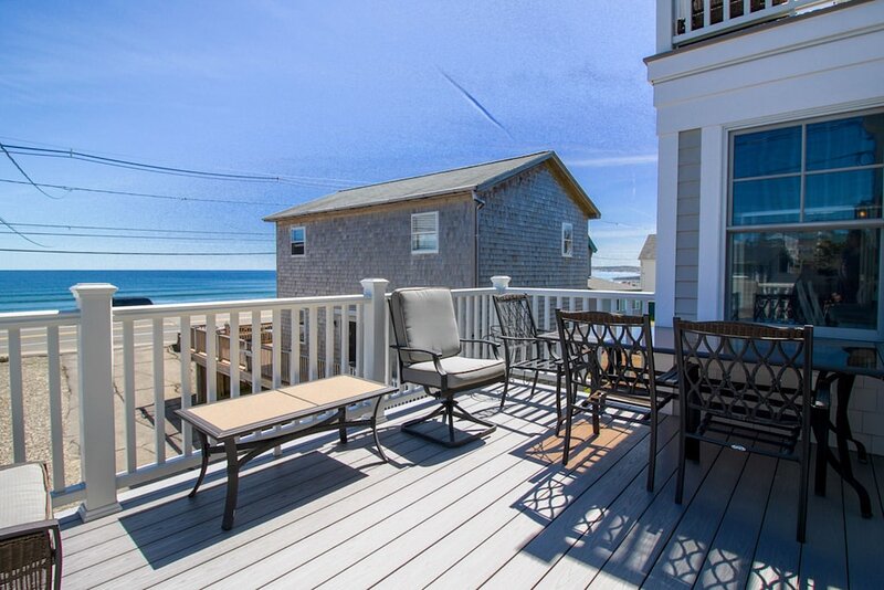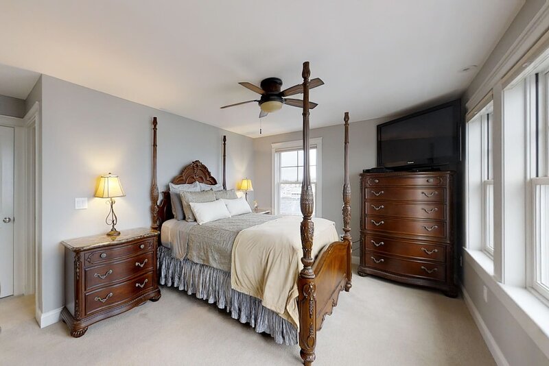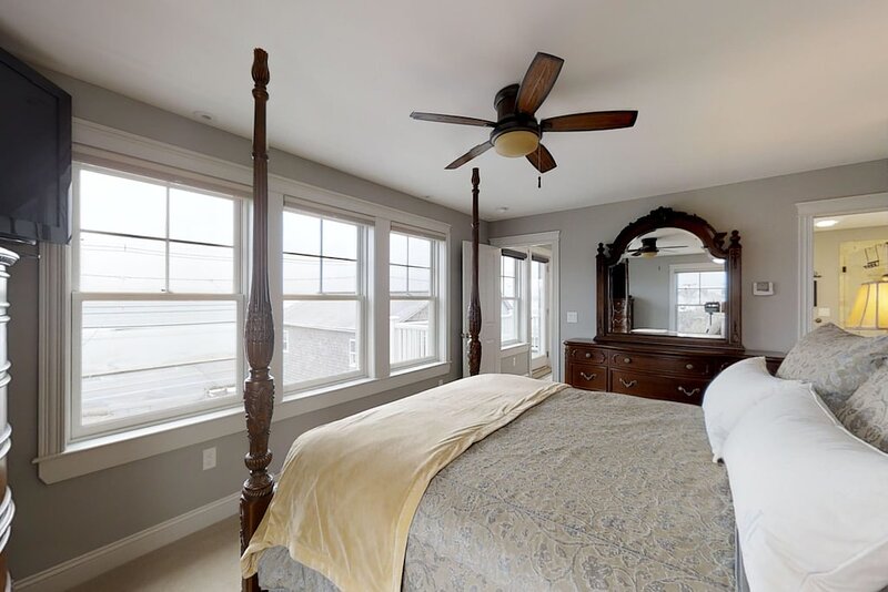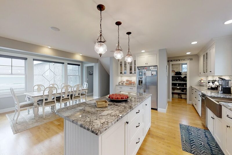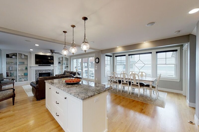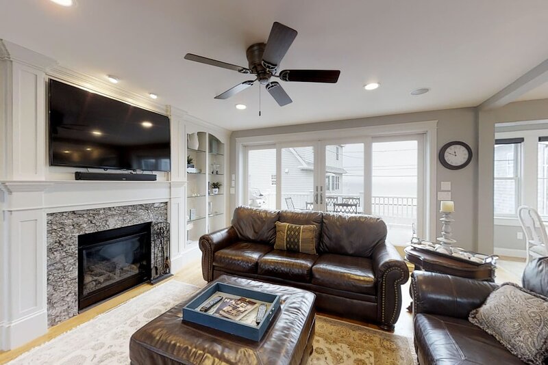 At Ease On Long Sands Our calendar is updated in real-time & our nightly rates are accurately displayed. Simply enter your desired dates and click ‘Book Now!’ Gentle ocean breezes and long, lazy days on the beach are waiting for you at this elegant York home. Filled with top-end furnishings and set just steps from the beach, this is the ideal spot come unwind with the whole family. Located just across the street from the iconic Maine beach dunes, your seaside vacation is just around the corner. The spacious main living area is filled with well-appointed furnishings and high-end beach decor. Lounge on the leather couch while you catch up with your favorite cable show on the large flatscreen TV. Pick out a DVD from the provided library while your friend makes some popcorn in the microwave for a movie night. Grab some small bites and make a drink at the mini-bar, then head out on the deck to unwind and enjoy a quiet moment. Put a quick sear on a fresh seafood catch with the gas grill while you listen to your favorite song streaming on your personal device via WiFi. Head back inside to the comfort of the central A/C to get started on dinner in the gourmet kitchen. Adorned with custom counters, high-end stainless steel appliances, and an expansive kitchen island, you’ll feel like a Food Network star while you cook for your crew. Cuddle up by the gas fireplace afterward with a bottle of wine. When it’s time to turn in, this four-bedroom, three-and-a-half-bathroom home will let up to eight guests stay in style. On the third floor, you’ll find a master suite waiting to greet you with a sophisticated four-poster queen-size bed (with a Beautyrest Black mattress), an en suite with a jetted tub, and large flatscreen TV. On the main level, there are three more bedrooms: Two rooms feature queen-size beds, while the fourth room has a soft double bed for your guests.