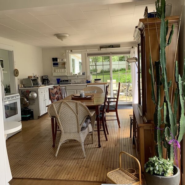 OGUNQUIT-Great location–Walk to Marginal Way, Perkins Cove, downtown & beaches.Ogunquit home available for weekly summer rentals.6 person maximum occupancy. This bright and sunny house has a large living room, a den, a large eat-in kitchen, 3 bedrooms-(sleeps 6) and 1&1/2 baths. Relax on the covered porch. Make reservations to walk to and dine at one of Ogunquit’s many wonderful restaurants. Enjoy the large back yard with grill and outdoor dining table. Internet–WIFI- -ROKU. The trolley stop is near by. Central air conditioning. All rooms have fans, also. Weekly summer rentals for June, July, August & September.Weekends/weeks available during other three seasons. This is a non-smoking house. Sorry, no pets.Less