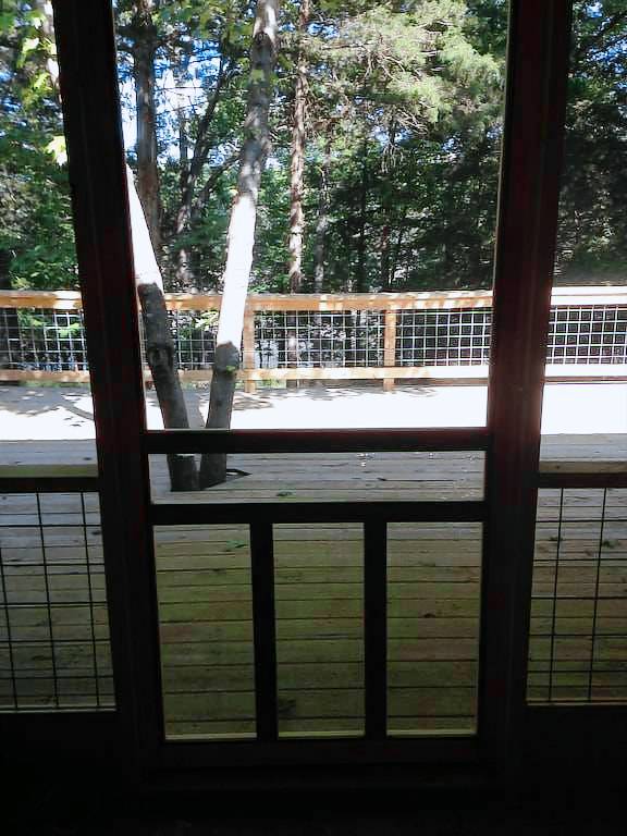 Tell me more about the cabin. The cabin has two bedrooms, each with a private bathroom and shower. The large, open kitchen has granite counter tops, a gas range with oven, and all the pots, pans, and utensils needed for your stay. Sit on the screened porch with your morning coffee and watch the birds. In the evening, step out on the open deck for a serene view of the woods and lake while you grill your afternoon catch. Later, build a fire in the fire pit and roast some marshmallows. There is a public boat ramp half mile from the cabin with easy boat access to the lake. Bedroom #1 has a queen bed, bedroom #2 has two twin beds, and cots are available upon request. A washer and dryer are provided. The Peel Ferry and a marina are just up the road.